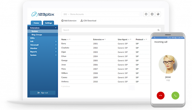 123pbx offers Standard, Business, and Unlimited hosted PBX packages featuring built-in IVR, three-way call conferencing custom greetings, and voicemail services. The company offers multi-platform VoIP services through iOS and Android apps for desktops, laptops, and handheld devices.