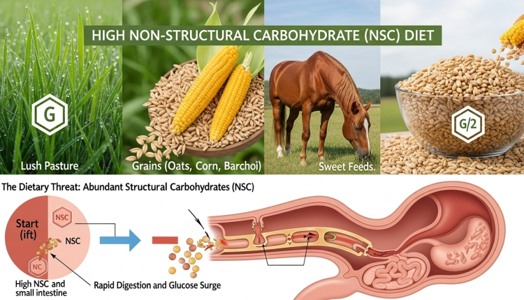 The foundation of managing insulin resistance in horses lies in understanding how non-structural carbohydrates trigger dangerous metabolic responses. When horses consume feeds containing high levels of NSCs—which include sugars, starches, and fructans—their bodies respond with significant insulin spikes that can persist for hours. These elevated insulin levels create a cascading effect that damages the delicate structures within the hoof, potentially leading to the painful and often devastating condition known as laminitis.